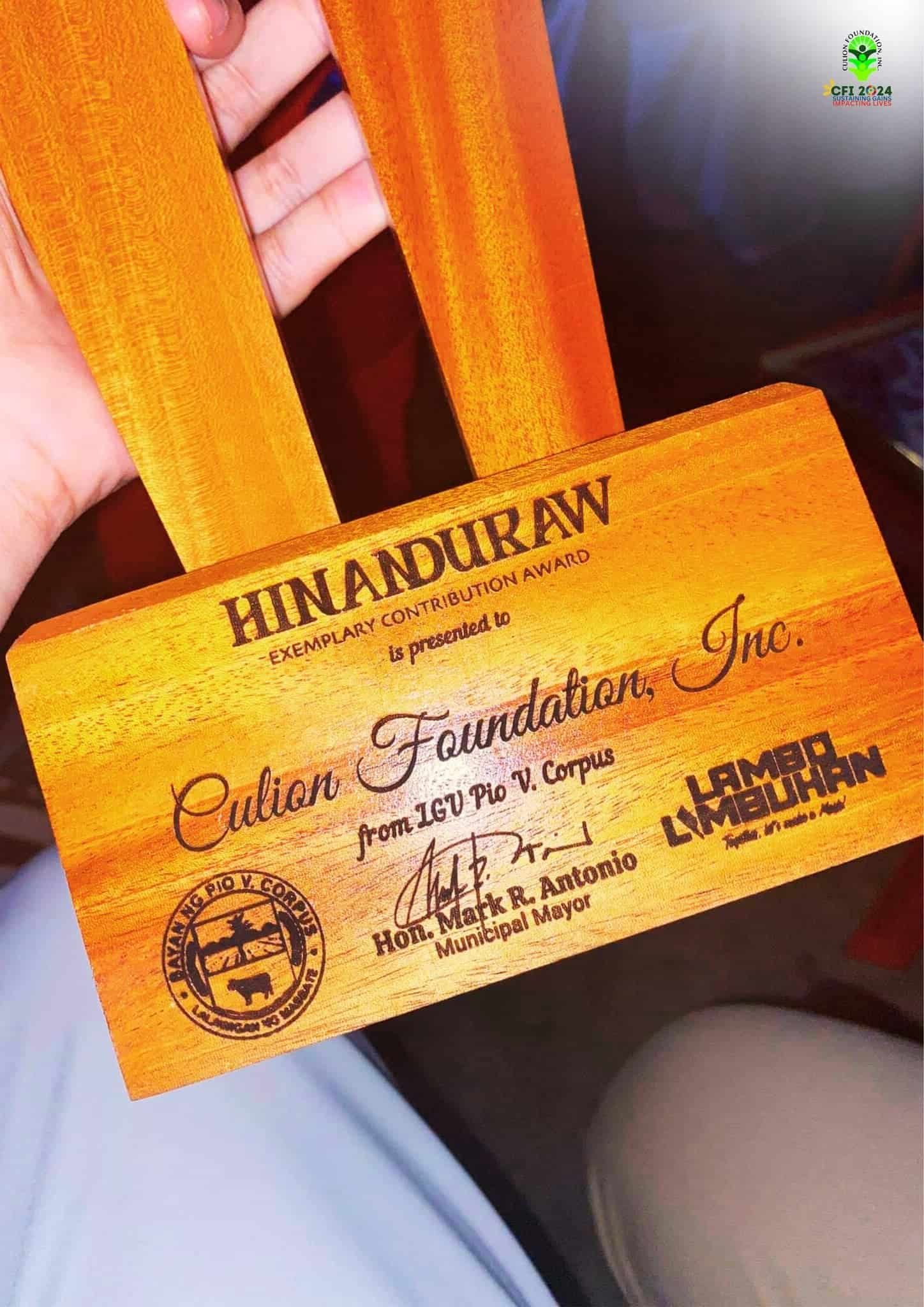Culion Foundation, Inc. (CFI) was honored as one of the exemplary awardees in the “Hinanduraw” Awards during the celebration of Pio V. Corpus (Limbuhan) 73rd Founding Anniversary. This recognition is a token of gratitude for the foundation’s ongoing public health service in the Municipality of Pio V. Corpuz, Masbate.