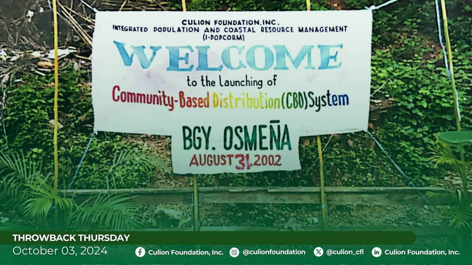 On August 31, 2002, at Brgy. Osmeña, Culion, Palawan, CFI took proactive steps towards sustainable coastal resource management through the establishment of a Community-Based Distribution System. This initiative empowered local stakeholders such as fisherfolk, farmers, and community members to collaboratively manage and protect valuable marine resources. By fostering responsible stewardship, the project aimed to ensure the long-term sustainability of our coastal environment, while enhancing the livelihoods of the community.
